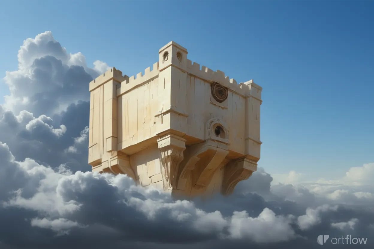 The second major point I would raise is the extreme difficulty of operating at 15,000’ elevation. A flight spell will be sufficient to ascend in probably three to four turns depending on encumbrance, but likely won’t last long enough to also make it back down. Flying mounts are a more viable option, but anything approaching the Citadel while it drifts 3000’ above the highest obscuring clouds will quickly be spotted and then face a barrage of lightning as it approaches — a risky proposition considering the typical fragility and enormous expense of such mounts. Solutions are well within reach of high level adventurers, but they won’t be trivial. Once within that lofty realm, characters will take mounting penalties from altitude sickness, forcing a hasty resolution or departure.